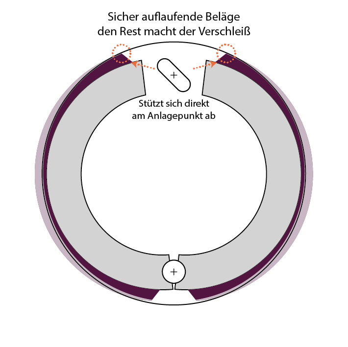 und schon bei minimalem Trommelverschleiß passt der "kleinere" Radius der Beläge