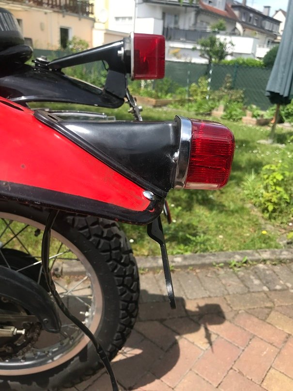 Hallo , wie Hobbes + Mambu schon schreiben , ich finde das kleine Rücklicht auch sehr viel gefälliger und wie man aufgrund des französischen Prospektes sieht auch original, von der Proportion her , ist das eckige schon gross, von den runden möchte ich da gar nicht mehr reden .