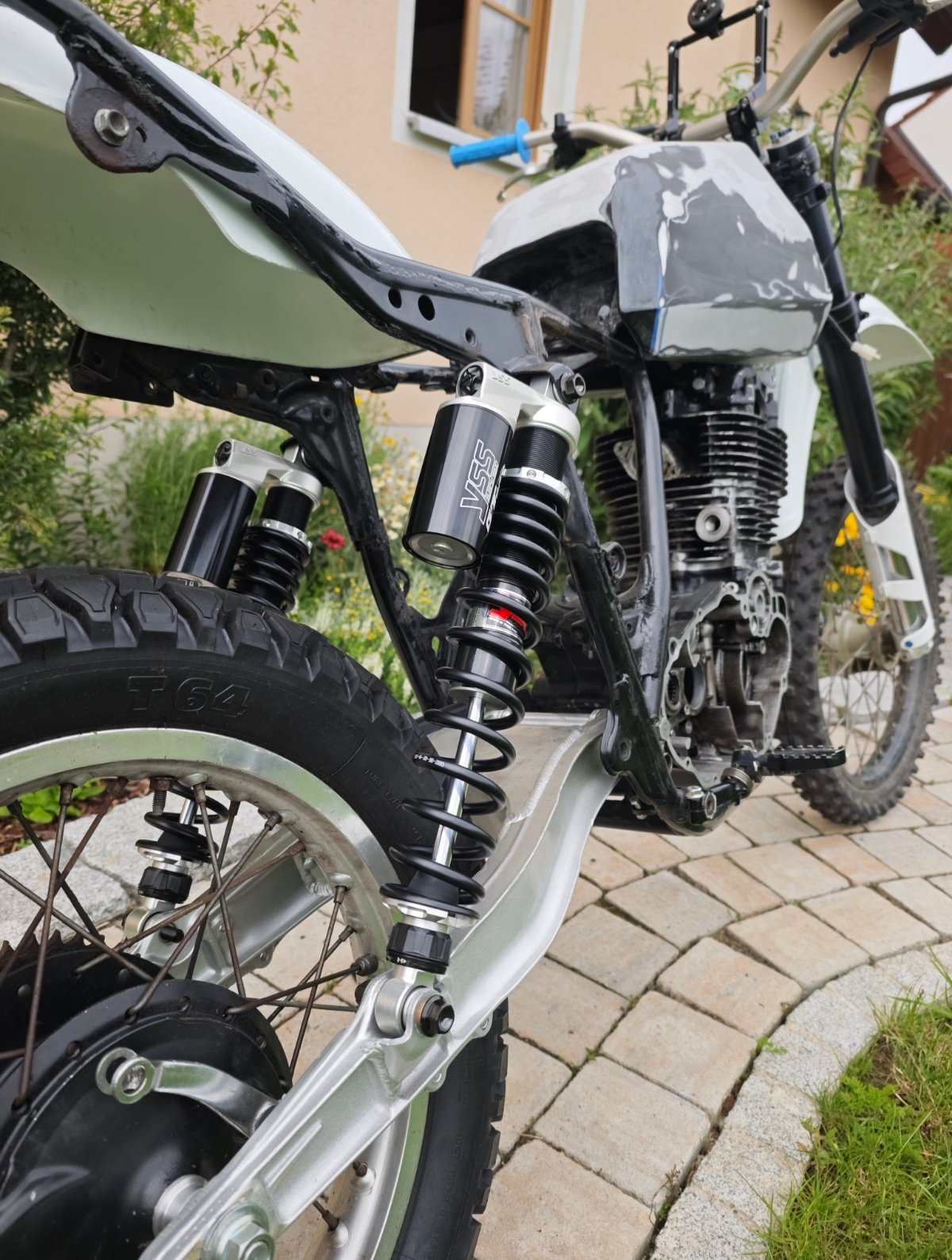 Aufgrund der Empfehlung von Hershey und dem unübertroffen guten Preis Leistungsverhältnis habe ich mich auch für die YSS RG362 Federbeine entschieden. Die gibt es in 420mm Länge für die kawasaki kx250, die sollten (hoffentlich) bei mir ganz gut mit der klx Schwinge harmonieren.