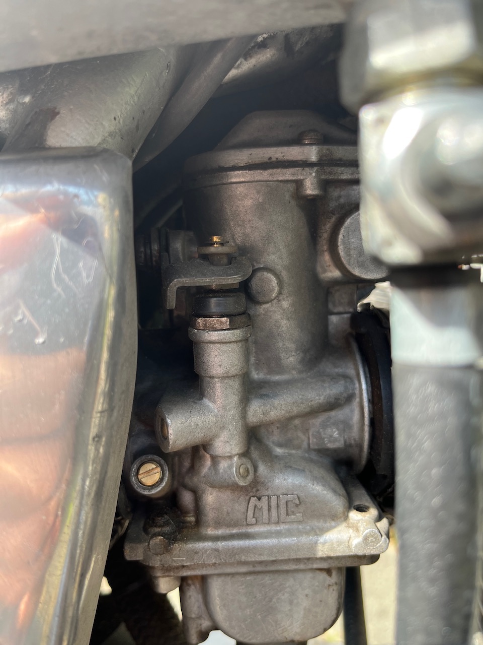 Dann sind die Flanschschrauben ein wenig blöd mit dem Inbus zu erreichen. Ausreichendes Zurückrücken des Gasers ging nur gut mit lösen der oberen Luftfilterhalteschrauben UND der Schlauchschelle am Ansaugrüssel. (Der Kram ist bei mir noch recht neu, also nicht in 40 Jahren geschrumpft).