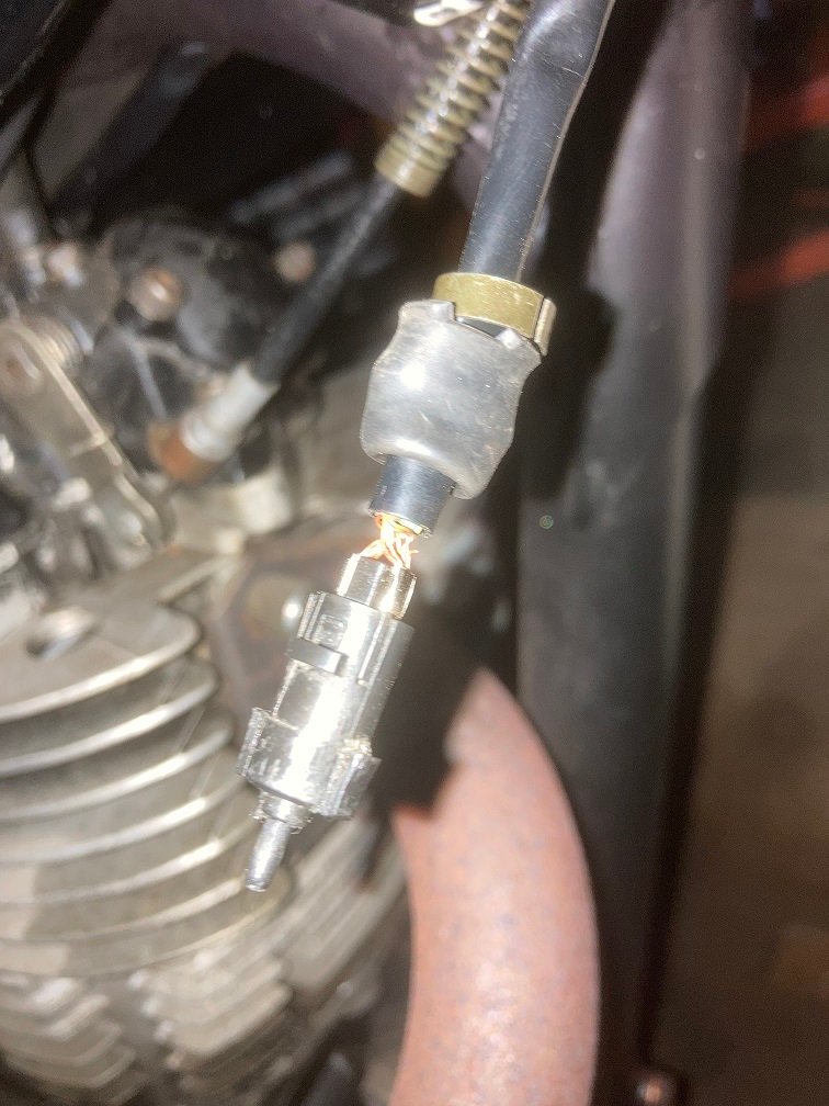 Das ist der vordere Bremslichtschalter und die beiden Drähte sind vor den Kontakten fast wie zusammengedreht - also immer 12V auf allen Leitungen und somit immer Bremslicht an - außer wenn Zündschalter auf Pos. 3 Parken, dann war das Bremslicht aus und das Rücklicht hat gebrannt. Aber wie schon geschrieben, ich hab den Schalter nicht angefasst und vor dem Kabelbaumwechsel hat es richtig funktioniert. Keine Ahnung wie der Vorgänger das hinbekommen hat.