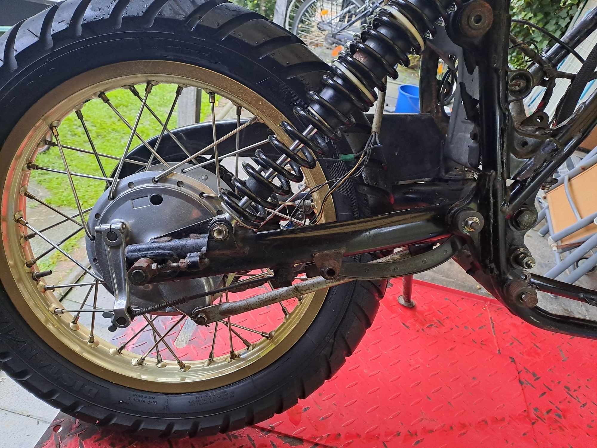 Was mir etwas Kopfzerbrechen macht, ist die verbaute Schwinge, welche nicht original zu seien scheint. Passen tut alles, aber ich finde das Gute Stück nicht im Netz. Leider habe ich keine Originale da, aber im Vergleich zu Bildern scheint sie etwas länger zu sein (51 cm Gesamtlänge)