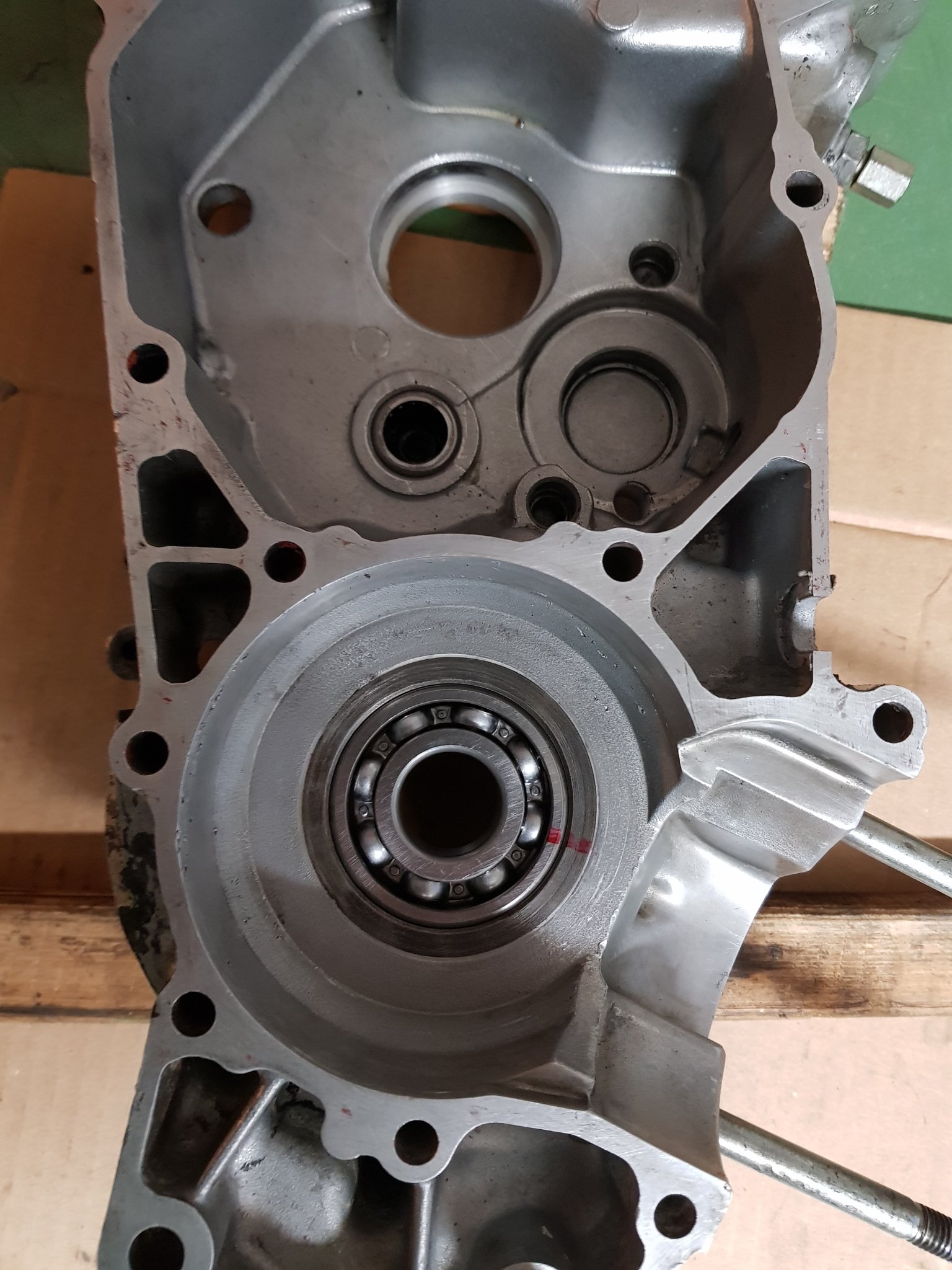 Habe dann die Motorhälfte warm gemacht und alle Lager gewechselt. Habe festgestellt das Kw-Lager ist erst nach dem Abkühlen fest im Sitz. Normal sitzen die ja spätestens nach 5 Sekunden fest. Na toll, Lagersitz hin. Habe es nicht probiert aber wahrscheinlich kann ich das Lager mit Anstrengung und zwei Daume da wieder raus drücken. Es sitzt aber ohne merkliche Spiel da drin.