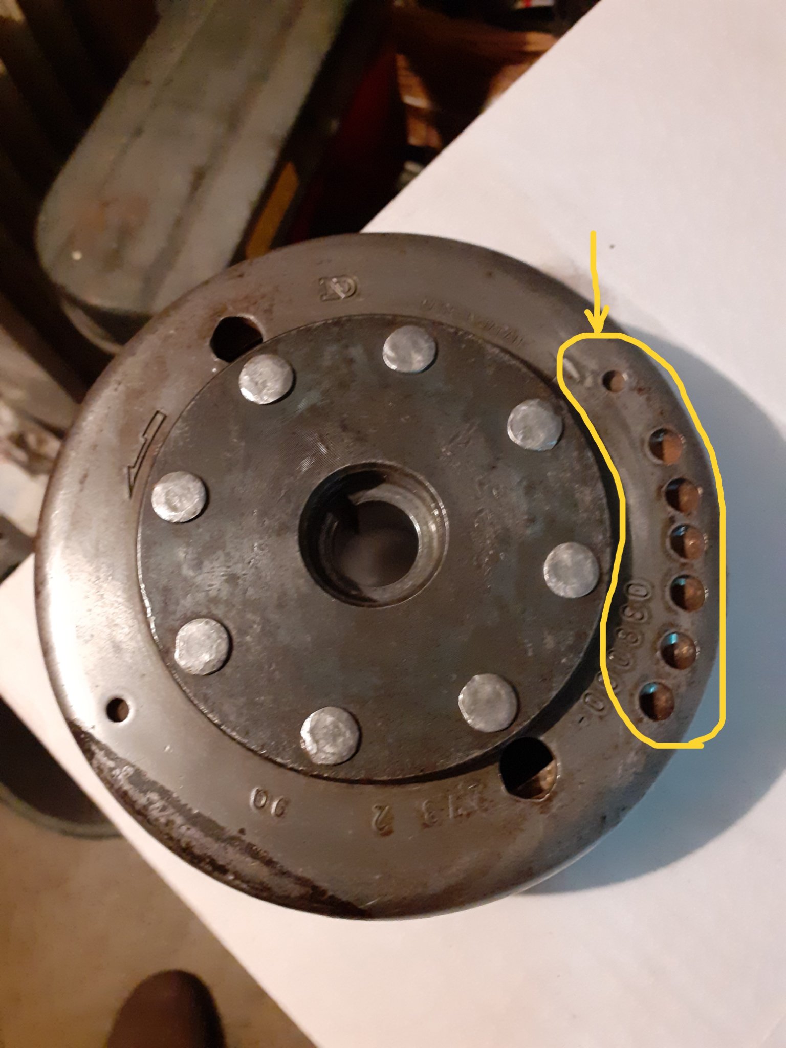 Damit wurde das Polrad ausgewuchtet. (an der Stelle erleichtert)
