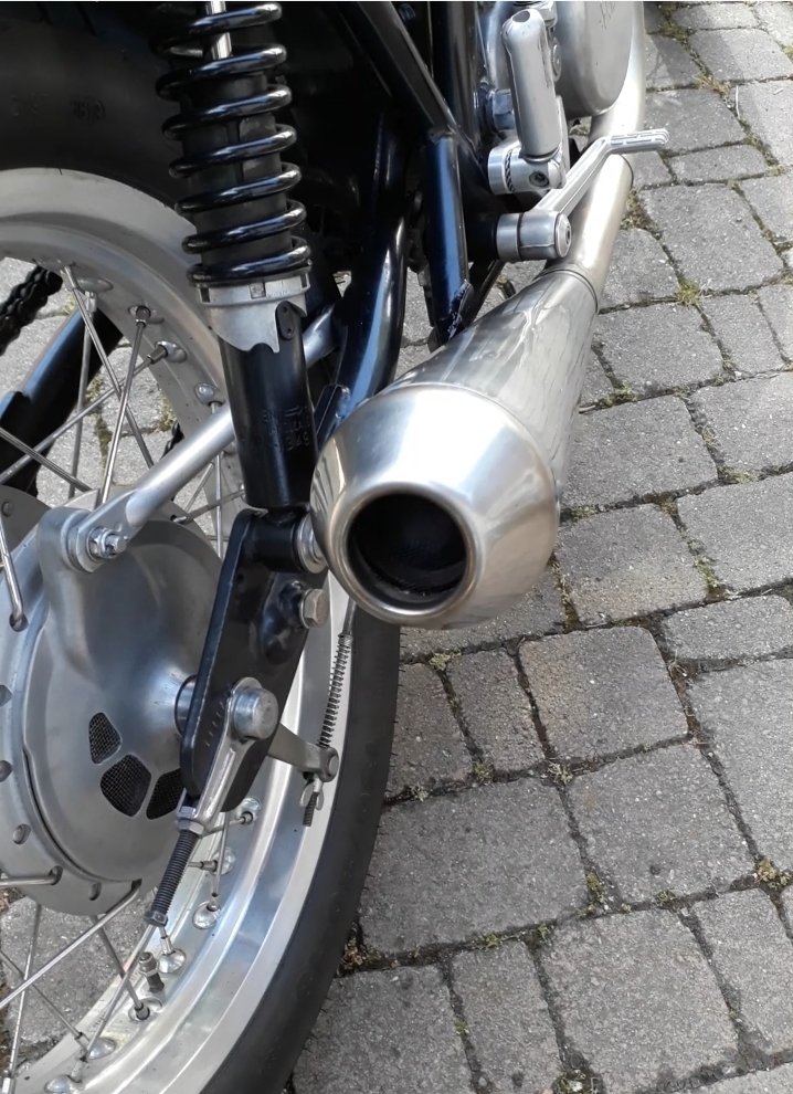 Jetzt kam mein Alter darauf, dass die Stauscheiben und Endkappe des Supertrapp den gleichen Durchmesser haben wie der Originale Xt/TT Endtopf an der Dose am hinteren Ende.