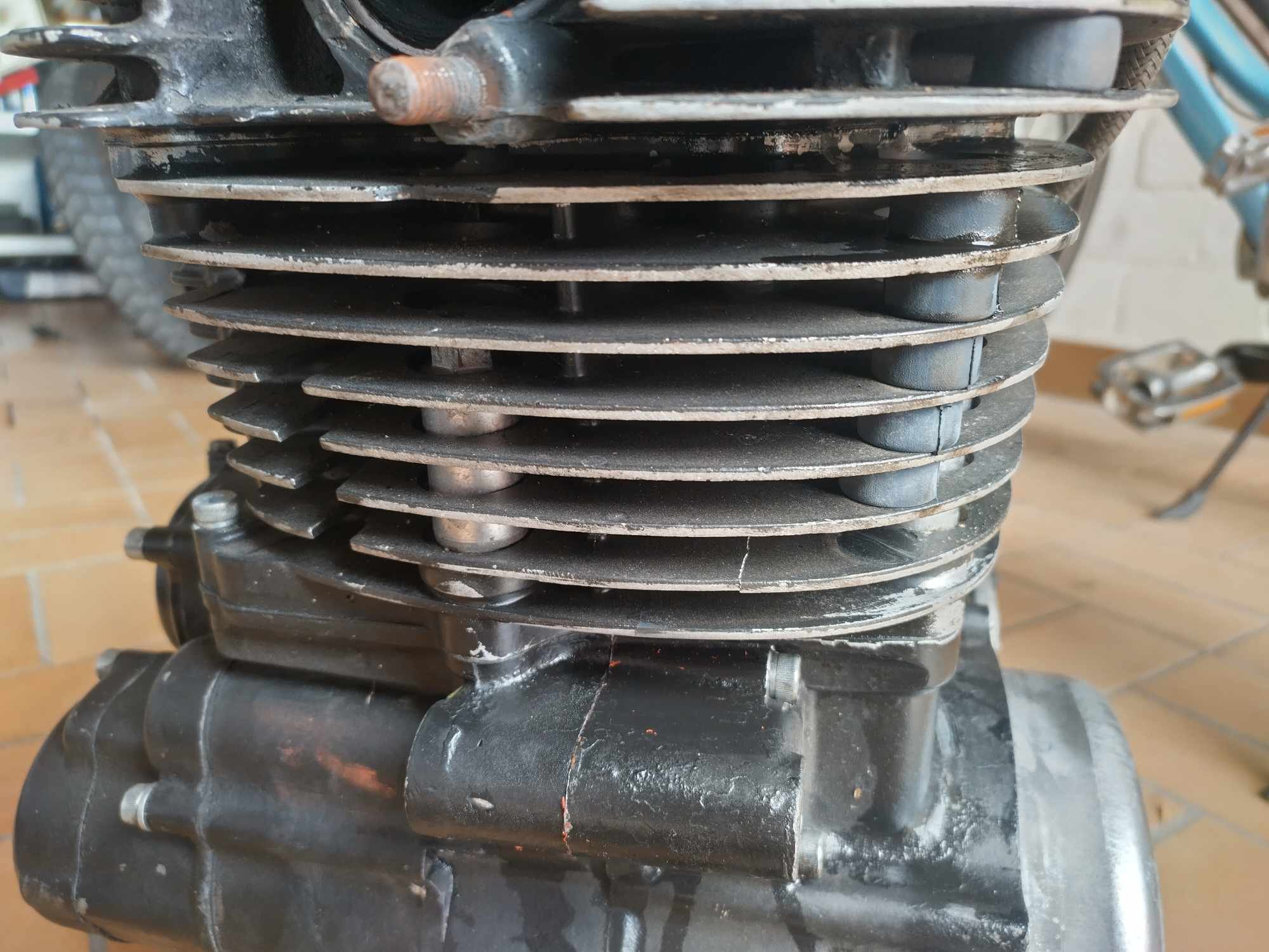 Zuhause dann den Motor ausgebaut und musste feststellen das der Zylinder auf der Rückseite unten eingerissen ist. der Motor wurde vor einigen Jahren revidiert mit MiniBigbore und Tuningnockenwelle von einem XT/SR Spezialisten. Laufleistung seit dem ca 6tkm.