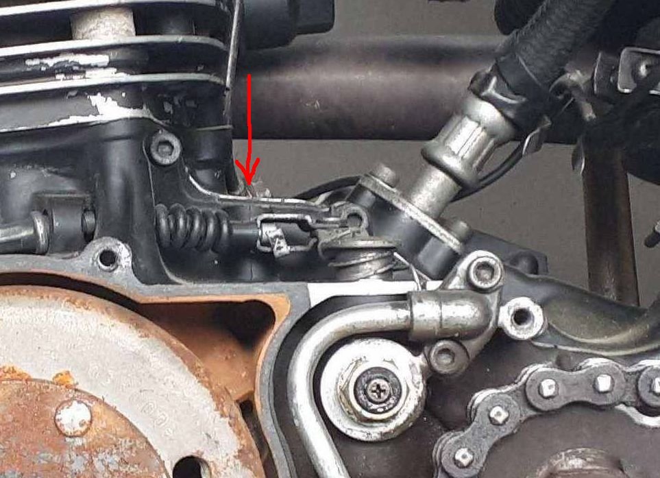 Da fehlt der Kunststoffstöpsel mit Schlauchanschluss der die Lichtmaschine, und indirekt auch das Unterbrechergehäuse belüftet. Der Schlauch wird z.B. unter die Sitzbank verlegt, damit kein Wasser rein kann.