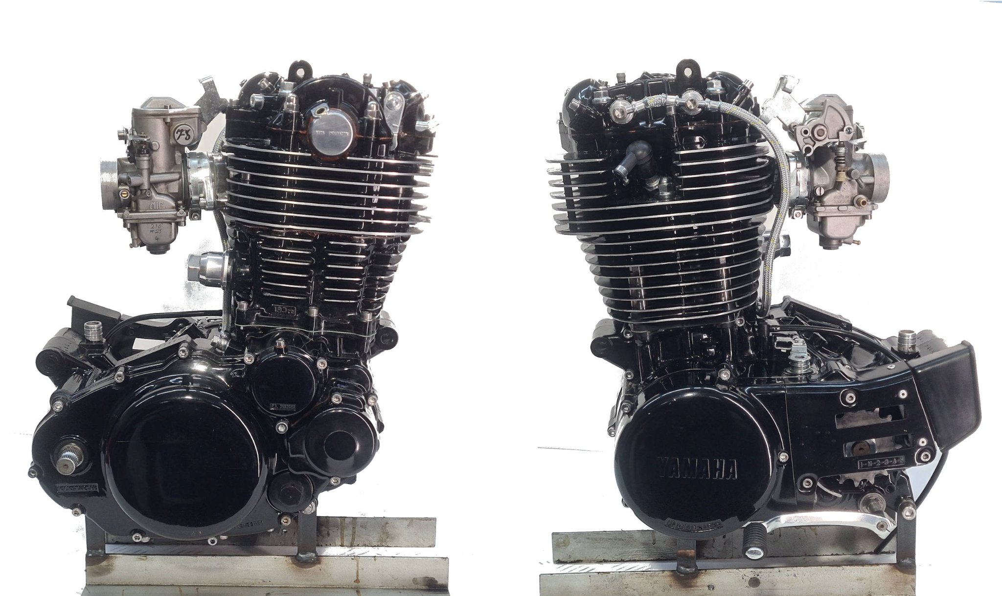 natürlich lackieren, wie auch die beiden Gehäusedeckel und Zylinder; danach die Stirnseiten der Kühlrippen, wie auch den Yamaha-Schriftzug wieder blankschleifen.