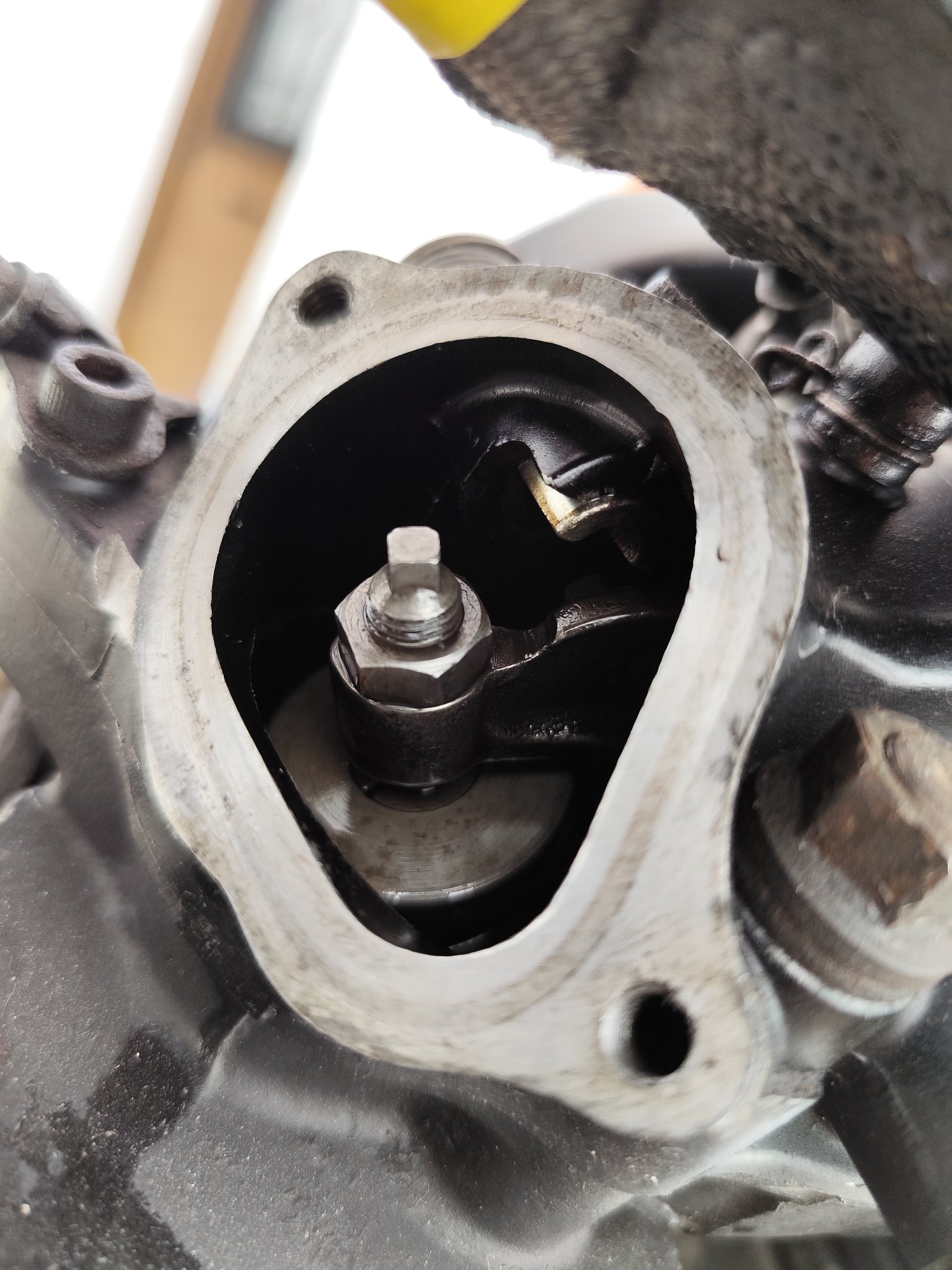 Jetzt kontrollier ich gerade die Ventile. Wenn ich auf OT bin haben sie das korrekte Spiel, dann drehe ich weiter bis zum nächsten OT und dann sind die Kipphebel fest. Das ist schon richtig so, oder?
