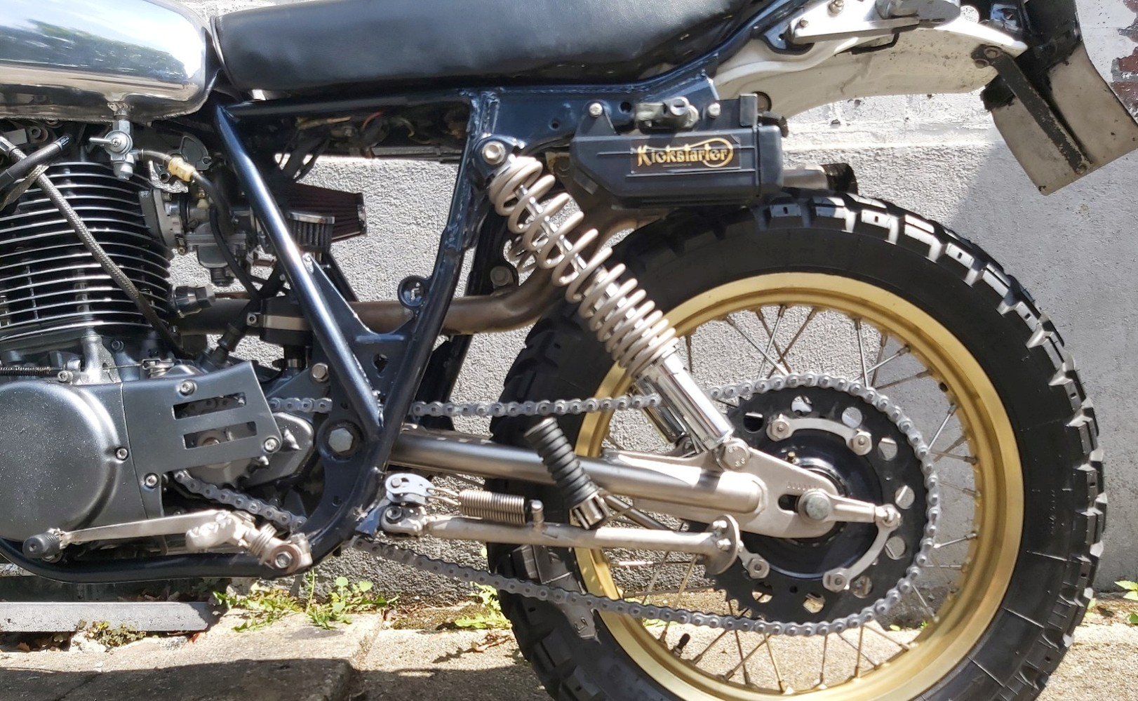 Ja, für eine "normale" XT ist die Schwinge wohl nix...aber für mein Projekt könnte das evtl. passen...wenn du sie loswerden willst sag mir bitte per PN Bescheid.Das Alu-teil war mir zu lang. Die Achse war schon ganz vorne und das Rad guckte schon hinten raus. Das war mir zuviel Murks. Ich mag schon Herausforderungen also nicht nur pluck and play. Man braucht kurze und besonders harte Stoßdämpfer. (hatteichzwar) aber das die ganze Sache harmonisch fahrbar wird, ist damit noch nicht gelöst. Man müsste sich schon welche anfertigen lassen. Aber ohne Daten???? Die Optik ist nur Beiwerk, man will ja nicht permanent über Eierkohlen fahren oder Seegang haben und das muss auch ins Bild passen und nicht behindert aussehen.