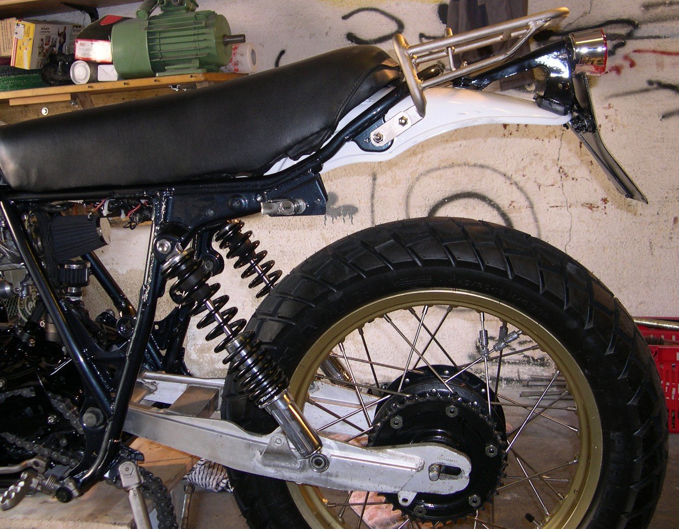 Frühere Umbauten: 49 EV, verstärkte VA Speichen, 34SS, 90er Kolben, vert. Ölpum, alle Lager neu, Elefantenfüße, Doppelkoklbenbr. 140/80/18 + Felge und und und den Rest sollte man erkennen können oder auch nicht