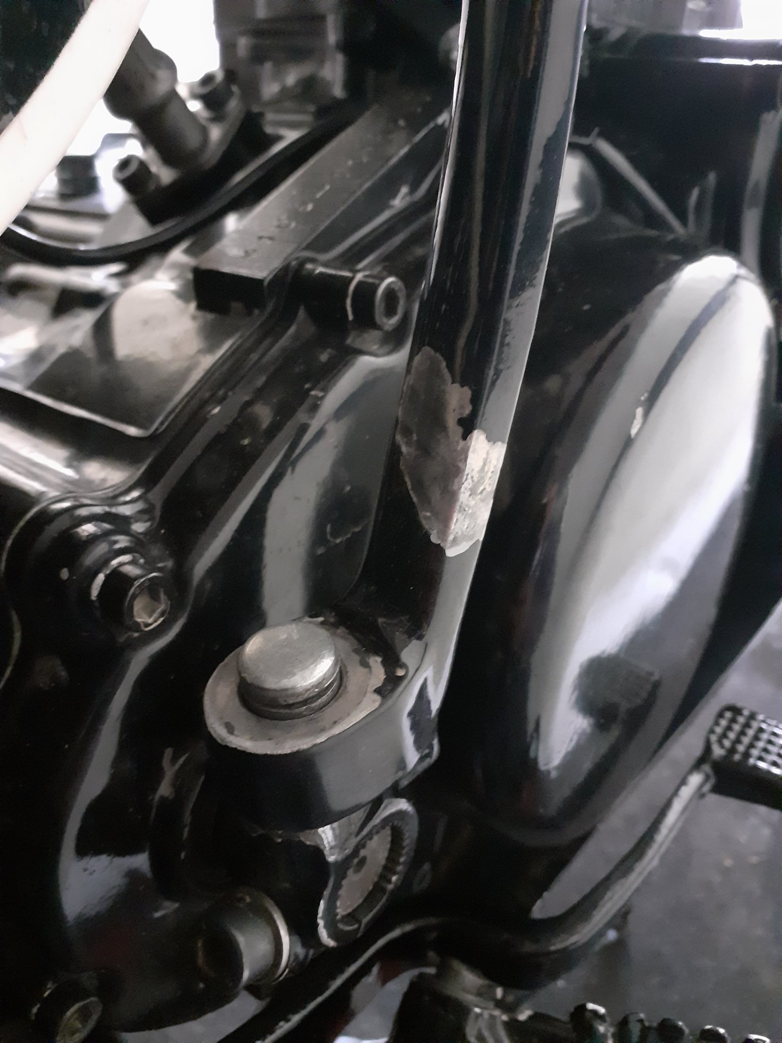 Hi also bei mir schlägt es natürlich auch an aber an anderer Stelle mit geringerem Kontaktpunkt wie es aussieht , Du hast ja die TT Rasten dran es müssten mal die anderen sagen ob es mit den normalen Rasten auch so ist ,Dein Kicker ist ja schwarz ,ist das ein originaler ? Ich habe auch die TT Rasten ,mit meinem Kicker sieht es aus wie auf den Fotos ist allerdings ne 76er mit 76er Kicker ,der ist gerader als die späteren. Kannst ja mal vergleichen , was mit auffällt bei meinen ist zwar der chrom ein wenig ab aber bei Dir sind ja eher auch so Anschlagpunkte ..