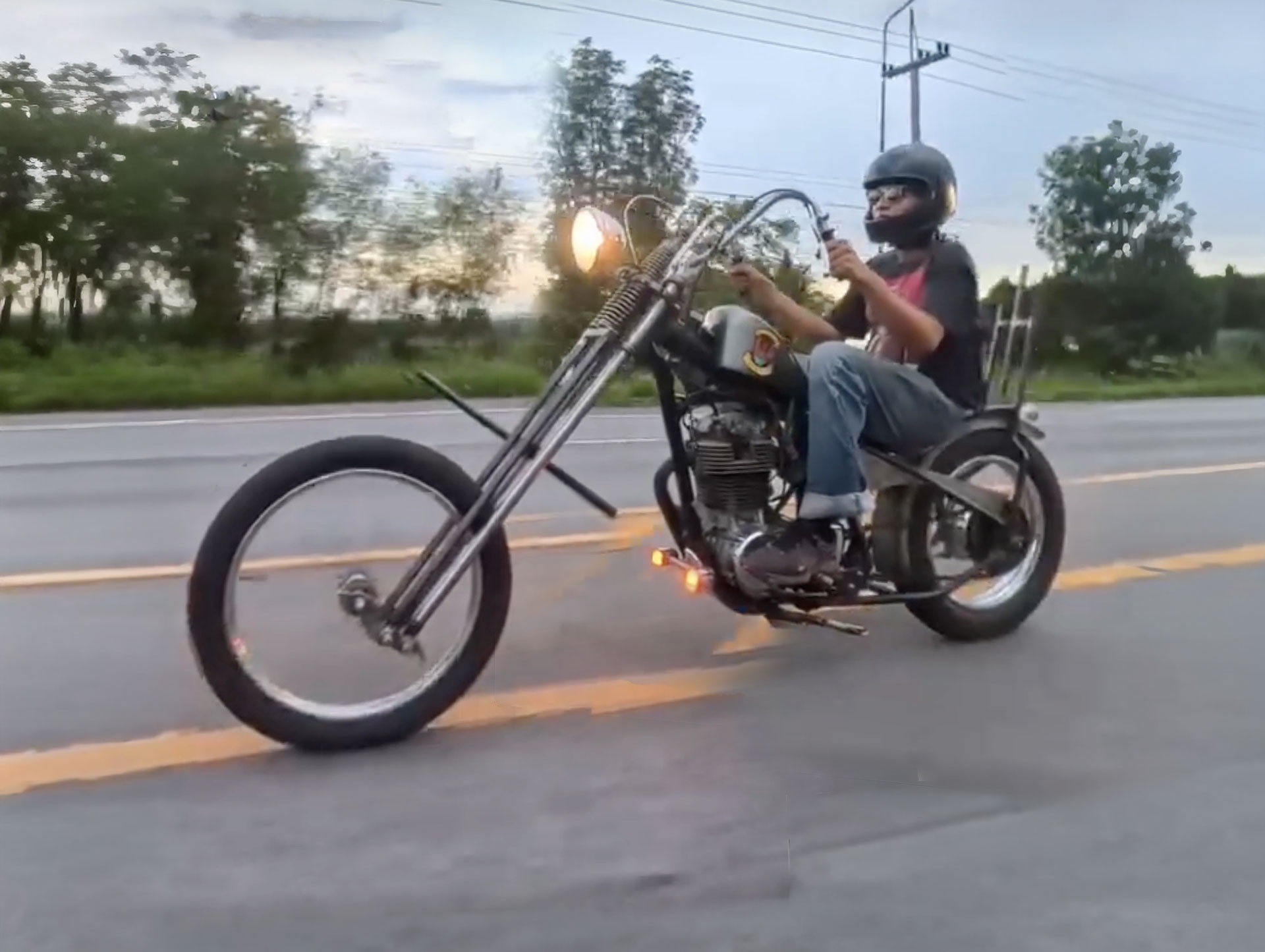 Mit den nicht vorverlegten Fußrasten hockt er wie „der Affe auf dem Schleifstein“ drauf!