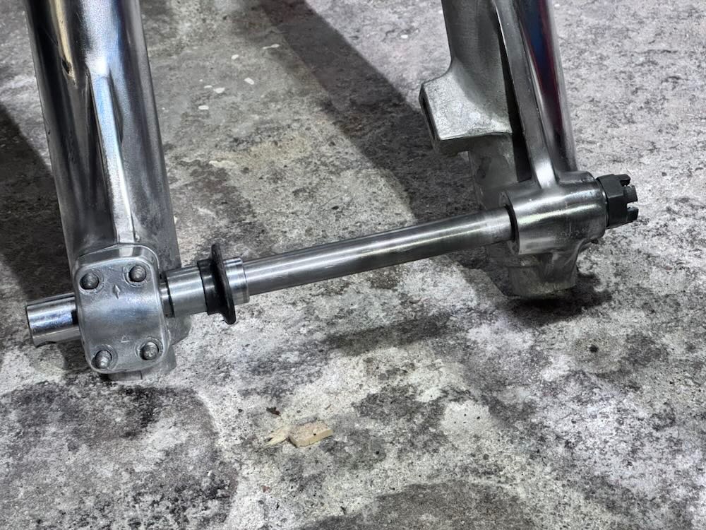Gestern ist mir eine fast ungebraucht aussehende 550er Gabel durch die Lappen gegangen. Mist. Zu lange zugeschaut. Heute habe ich eine weitgehend gut aussehende komplette geschossen. Kostet deutlich weniger als ein einzelnes Standrohr für die XT500. Hoffentlich ist sie halbwegs gerade…