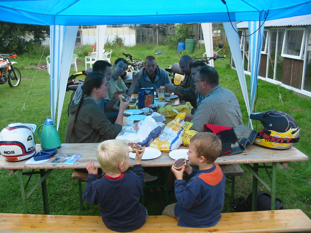Habt ihr's gut. Hoffentlich gibt's auf dem Acker dort keine glänzenden Beulen.Die Ausfahrt geht nach Vellahn zu einem Motocrossplatz!