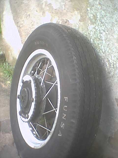 Motorradreifen 5.00-16, Hersteller Continental Profil K112, oder Avon Profil MK2, ohne Eintragung des Herstellers zum anschließenden Umbau auf Autoreifen 5.00/5.25-16, Hersteller Puma oder Funsa, beide aus Urugauay, Standardautoprofil.