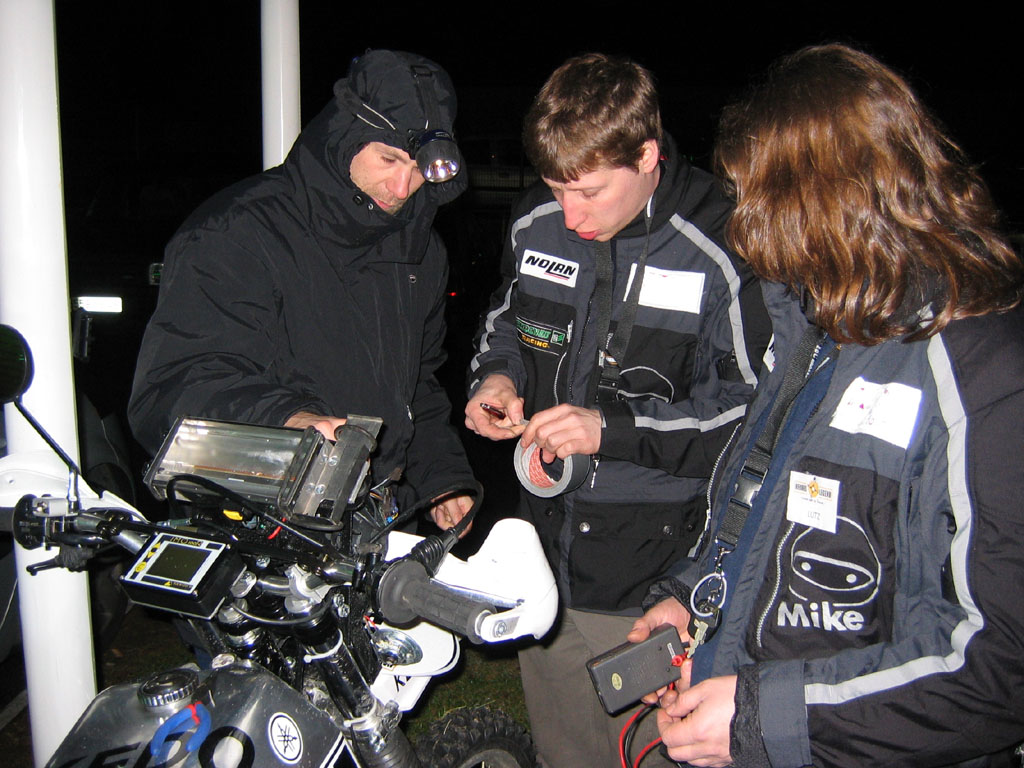 Nach dem Roadbook fahren wir durch Paris und zwei holländische Teams folgen uns blind. Beim Verlassen der Peripherique verlieren wir die Strecken und beraten uns kurz auf einer Busspur. Ich empfehle den Holländern nicht zu folgen, da ich nun nach GPS fahren möchte, aber die Holländer lachen nur, meinen es wäre zu spät, und folgen weiter. Wir haben Glück, schon kurze Zeit später sind wir auf der N20 nach Orleans. Nach etwa 70km machen wir Stopp bei einem Supermarkt, essen etwas und wechseln Fahrer bei der XT. Den Rest kann ich nun fahren, so ist jeder an diesem Tag mit der XT gefahren.
