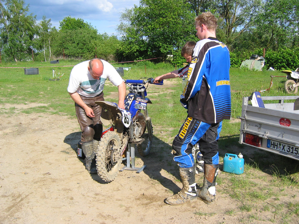 Arne (Mai-O-Fahrt 2005 mit der DT80) wollte mit seiner YZ80 nun mal auf den Ring und hat sich meinen Anhänger dazu geliehen.