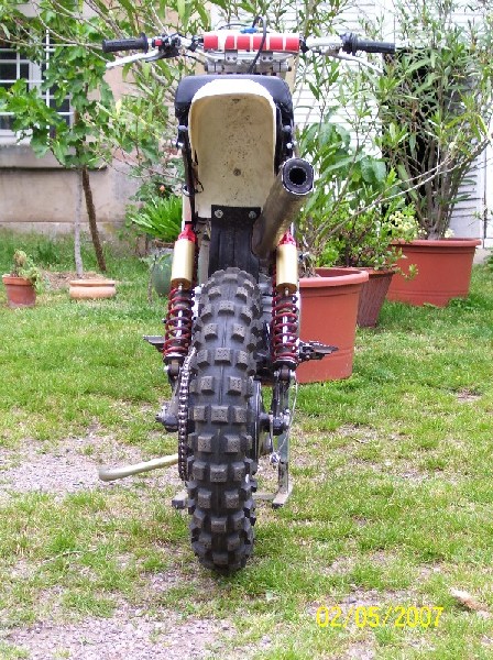 Der Motor hat oben zwischen Ventildeckelchen und Rahmenrohr ca 1mm Luft. Die Zündung ist von einer YZ250, bei der ist nur das Problem, das die Max. Frühzundung nur 22 Grad beträgt. Ich bin aber gerade am Kundigmachen was ein Pic-Controller so kann, vielleicht kriege ich ja eine Zündung mit prog. Kennlinie hin.