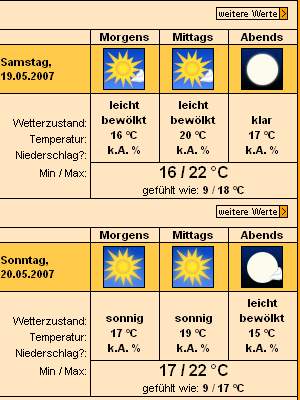 1. Frank, den Wetterbericht für Sonnabend berichtigst Du aber noch, sonst hast Du die Schuld, wenn ich nass werde.