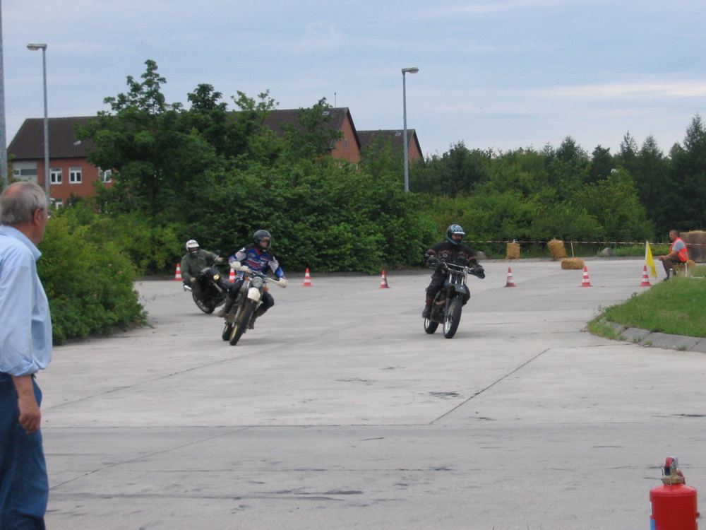 Unglaublich, was mit so harmlos aussehenden Motorrädern geht. In der sog. Einsteiger/Oldie/Anfänger-Klasse waren fast 30 Fahrer am Start, und das bei einem Starterfeld von insgesamt knapp 70 Fahrern.