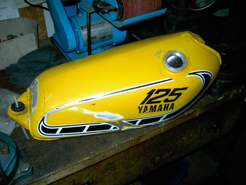 Das Plastikdingens in gelb ist natürlich nicht mein YZ-Tank, das ist der Replica-Tank von Clarke, war nur der, den ich auf die Schnell im Netz gefunden hab.