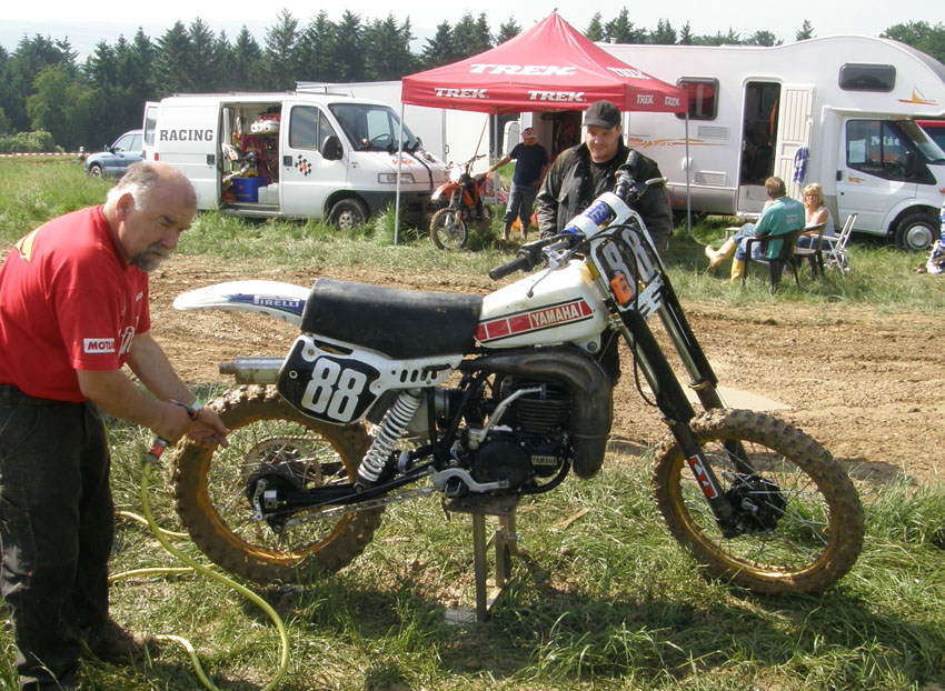Die Maschine ist eigentlich eine YZ400 der er zwei Dämpfer verpasst hat weil er das "Cantilever Geraffel" nicht mag.....