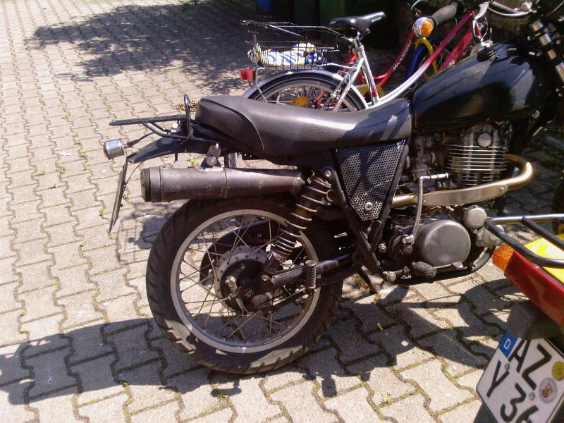 Ich hab mir mal etwas Mühe gemacht und einen Supertrapp-Auspuff, der eigentlich an eine Husquarna gehört, an die XT angepasst.