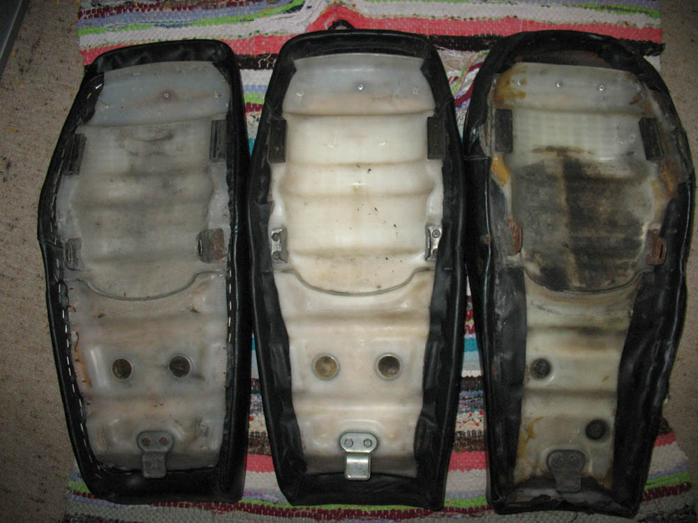 Wenn der vordere Halter an seiner für ihn bestimmten Position sitzt würde ich vorschlagen: neuer Sitzbankkern, neuer Bezug, hintere Halter wieder in ihren Originalzustand zurückversetzen, und ab dafür. Einfacher (aber nicht unbedingt besser): eine Sitzbank für die frühen Baujahre komplett erwerben (vielleicht kennt der Seefreedo da jemanden