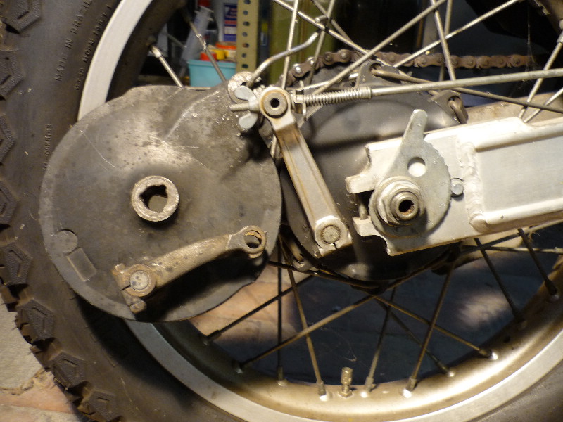 Bremsankerplatte DT250/DT400 (Cantilever-Modelle) passt ins XT500 Rad. Für die Abstützung ein Rechteckprofil an die Schwinge schweißen.