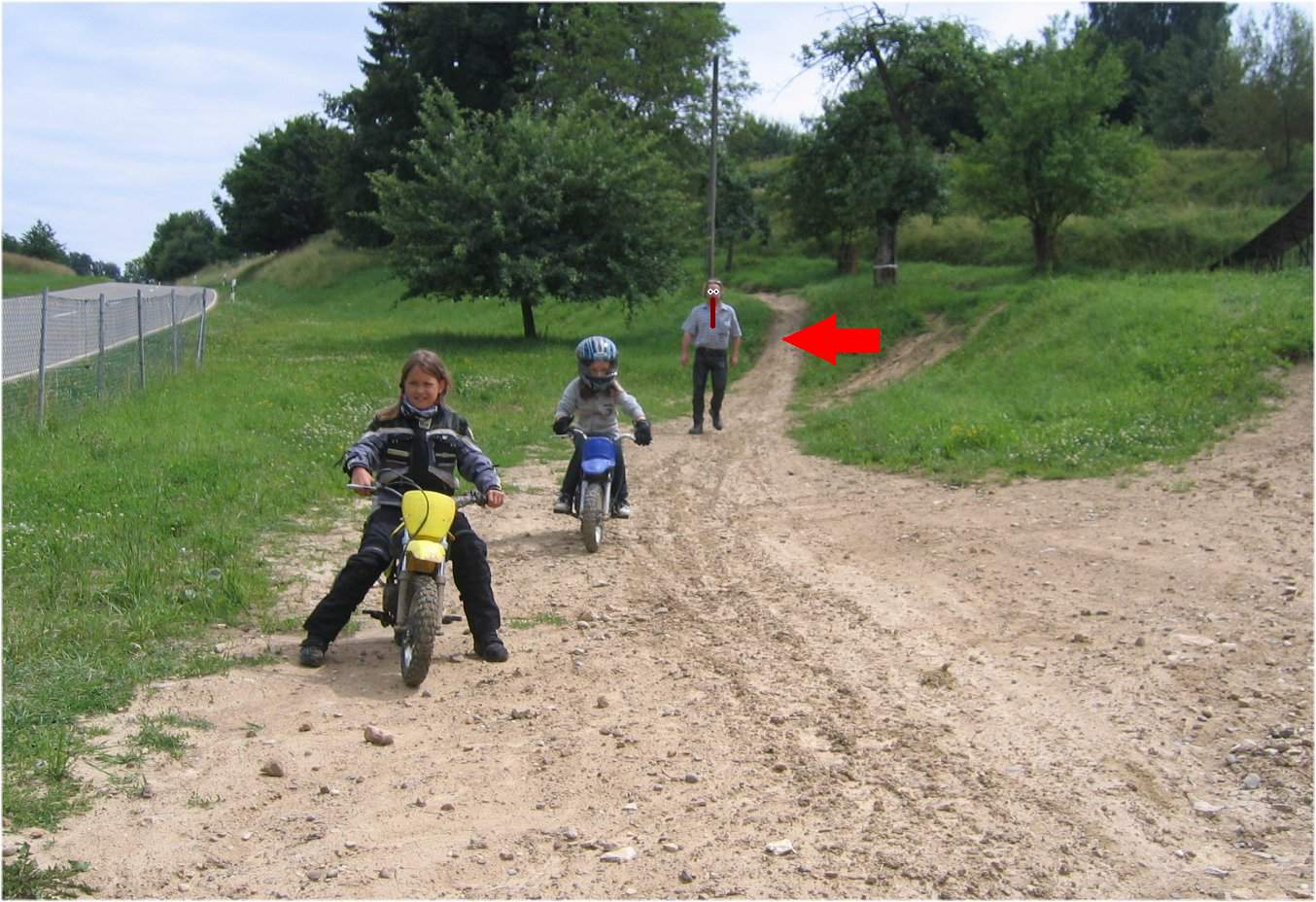 welche denn? Die, die vorbildlicherweise ohne Helm fährt?Übrigens ist eins der wilden Mädchen auf den Kindermotorrädern meine!