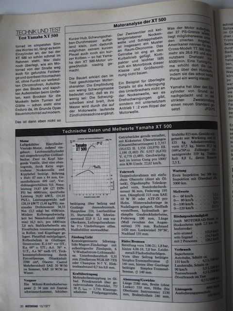Re: Yamaha XT 500 konkurrenzloser Einzylinder / Erster Test 1977