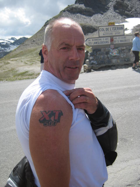 Andis KTM war nach Anfahren auf grobem Schotter nach links umgekippt und gefallen. Er hat sein relativ neues Gerät schnell vom Boden aufgehoben und bemerkte, daß wohl etwas Benzin ausgelaufen sei. Danach sprang sie nur einmal kurz an, ging aber gleich wieder aus. Da es bergab ging, ließ er sich rollen und orgelte dabei ganz fleißich auf dem Anlasserknöpfchen rum. Als er dann wenige hundert Meter weiter bei der Gruppe zum Stehen kam, machte die Orange plötzlich einen auf Hund ("WUFF!"), während Andi noch auf seinem Bock saß. Es bedurfte mehrfach der vehementen Aufforderung durch den Eintöpfe kochenden Kumpel Werner, den brennenden Haufen unter sich wegzuschmeißen, welcher Andi nach kurzem Zögern doch noch nachkam.Also das mit der ktm war echt Stoffwechselendprodukt