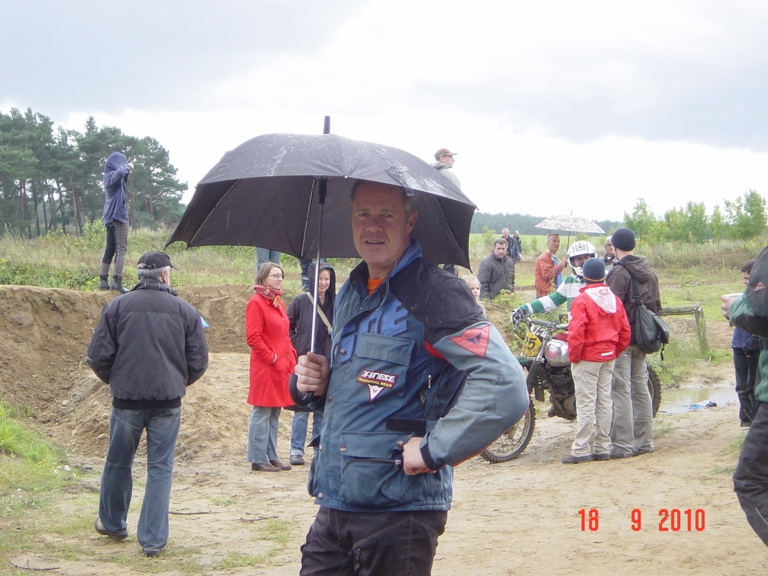 Die Strecke war gut gewässert, deshalb gab es keine Klagen wegen übermäßiger Staubentwicklung. Entgegen der Vorhersagen war uns das Wetter aber hold und bescherte teils sogar prächtigen Sonnenschein. Im Laufe der Zeit lies sich die abtrocknende Strecke immer besser fahren und anstelle der sonst immer knochenharten oder tiefsandigen Piste war sie diesmal richtig griffig.