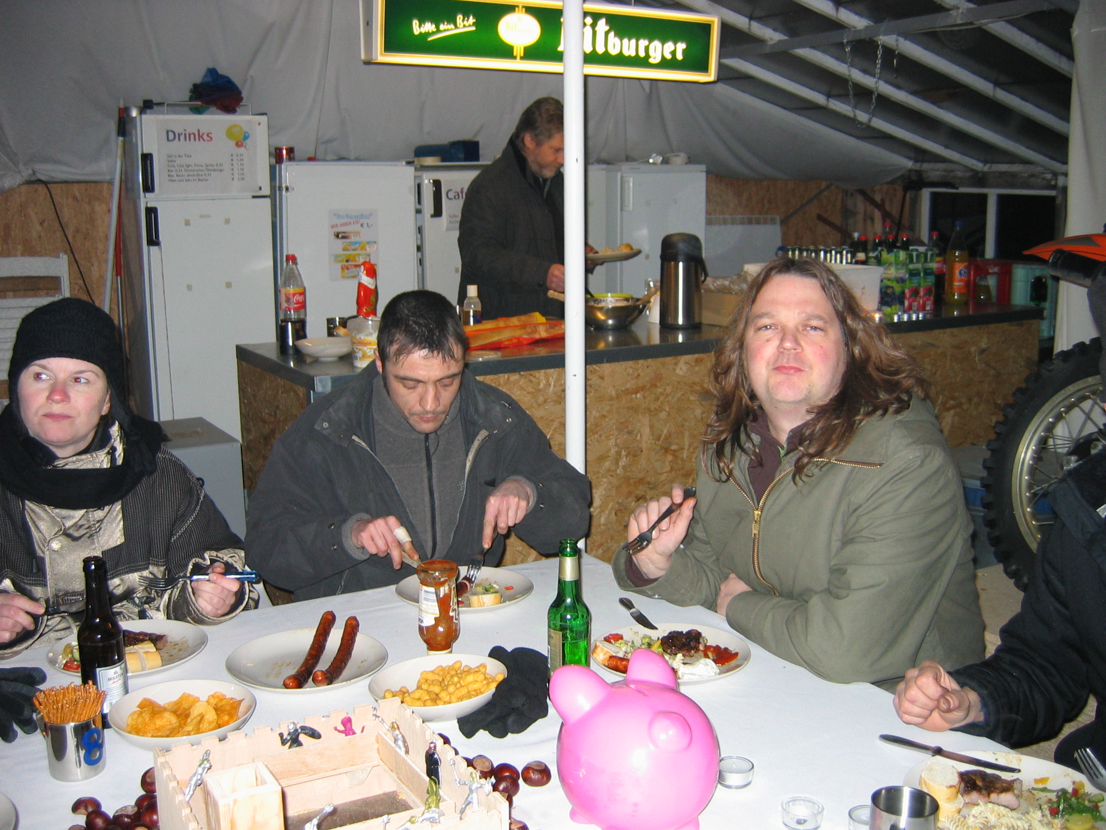 Mit XT-gerechter Tischdeko erwartete ich die Gäste. Die dann auch warm angezogen erschienen. Es waren 17 Erwachsene und 5 Kinder,