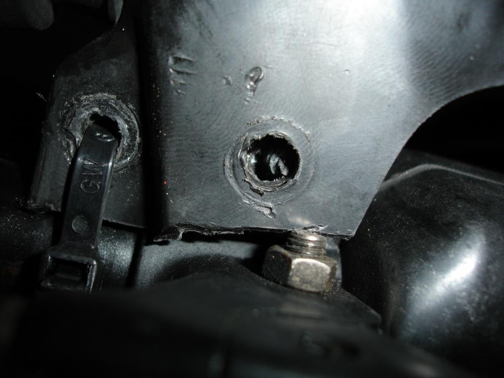 Also d.h., dass du die Schraube von den Brems/Kupplungshebeln durch eines der beiden Löcher an der Sc