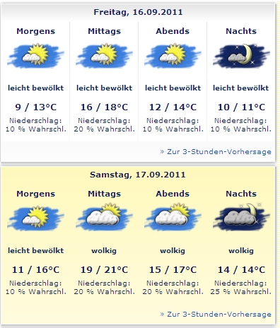ich nutze selten einen Online-Wetterdienst, habe hier lokal etwas laufen was die Daten auswertet:-) und das ist viel zuverlaessiger; am Samstag gibt es tagsueber 20 Grad.