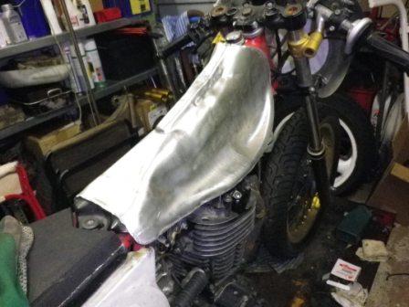 Von weiteren auch leichten Schleifarbeiten um sie einzuebbnen wollte ich absehen da die tankbleche am Xt-tank leider schon von haus aus nur duenne 1.5mm betragen im gegensatz zu den ueblichen englischen alutanks die meist zwischen 2-3 mm liegen.