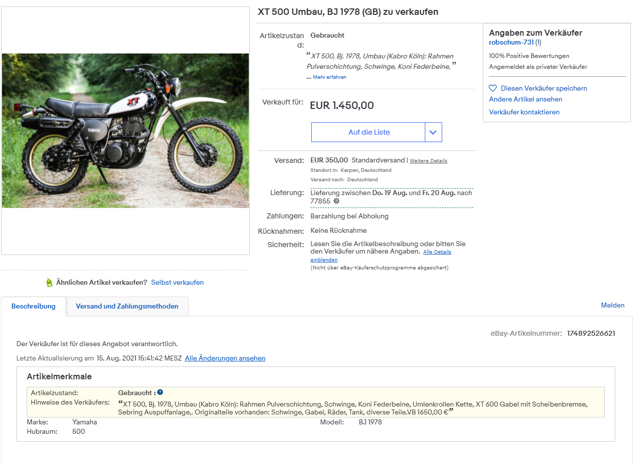 ... grad wurde das Angebot noch für 1450€ als Verkauft angezeigt.