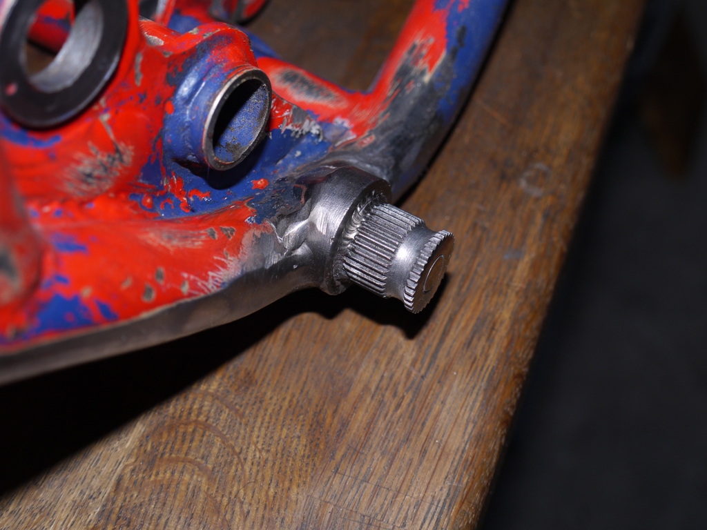 Wir haben bei meinem Rahmen vor Abtrennen der alten Verzahnung das Innengewinde verlängert und die neue Verzahnung mit einem kurzen Stück Gewindestange draufgeschraubt und anschliessend schön ringsrum geschweisst (WIG). Dadurch, dass wir die neue Verzahnung mit einer Fussraste ausgerichtet haben, sitzt die genau gleich wie die alte.