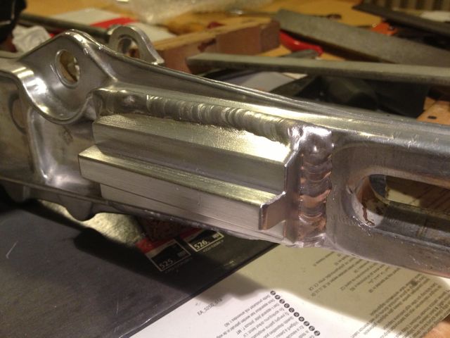 Schwinge ist jetzt fertig mit dem angeschweißten Gegenhalter.