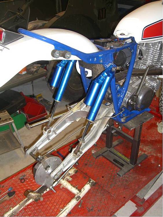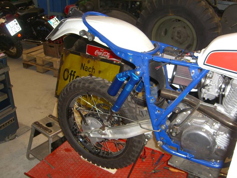 habe die Schwinge jetzt mal provisorisch reingesteckt. Da ist nicht viel zu ändern, bis alles flutscht. Radstand ist jetzt sehr nahe an einer 1984er Viertakt-Husky.