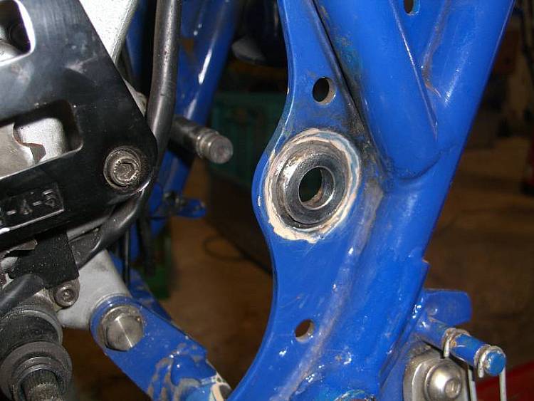 ansonsten kann sich die rolle und die schwinge im voll ausgefederten zustand in die quere kommen. dwg sollte man den anschlag des kettenspanners so modifizieren, dass die kette nicht den unteren schwingenarm berührt.