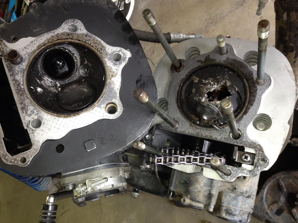 Das Wiedersehen mit Axel – der schon am Vortag per Fähre und mit seiner lädierten XT in Gepäck, dort eingetroffen ist – ist herzlich. Die Suche nach einem Motor allerdings war bis jetzt nicht erfolgreich und das erneute Auseinandernehmen seines blockierten Treibers ein weiteres Mal äusserst unerfreulich. Das abgerissene Auslassventil hat ein noch grösseres Schlachtfeld hinterlassen als vorher. Die Kipphebel sind auch wieder bereits massiv eingelaufen. Wir studieren stundenlang den Ölkreislauf der Maschine, untersuchen und analysieren alles, was unserer Meinung den Schaden hervorgerufen haben könnte. Ein „wetsumper“ – wie rei97 zu sagen pflegt – ist’s nicht. Beide Male als wir das Öl abgelassen haben, war unten im Motor nicht viel vorzufinden, dagegen kamen fast 2 Liter vorne aus der Ablassschraube im Rahmenrohr raus. Auch sprudelte das Öl bereits vor dem Auseinandernehmen in Anchorage, bei noch laufendem Motor und oben demontierter Ölsteigleitung soweit in Ordnung raus. Erst das Trennen der Gehäusehälften und die Analyse der Ölpumpe werden uns dann also letztendlich die Gründe für das definitive Ende des Motors aufzeigen.