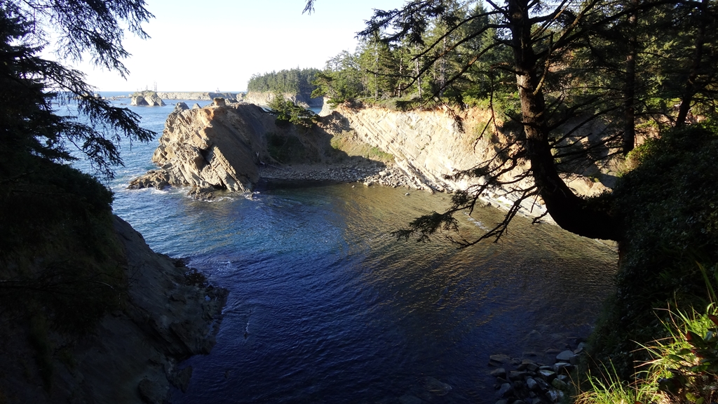 Die rund 530 km lange Etappe führt uns in die Nähe von Coos Bay, in eine alleine schon vom Namen her ansprechende Bucht namens „Sunset Bay“. Inmitten von einer wild wuchernden Vegetation, direkt an der Abbruchkante der Küste schlagen wir die Zelte auf und geniessen während einer Wanderung entlang der Küste den farbenprächtigen Sonnenuntergang.