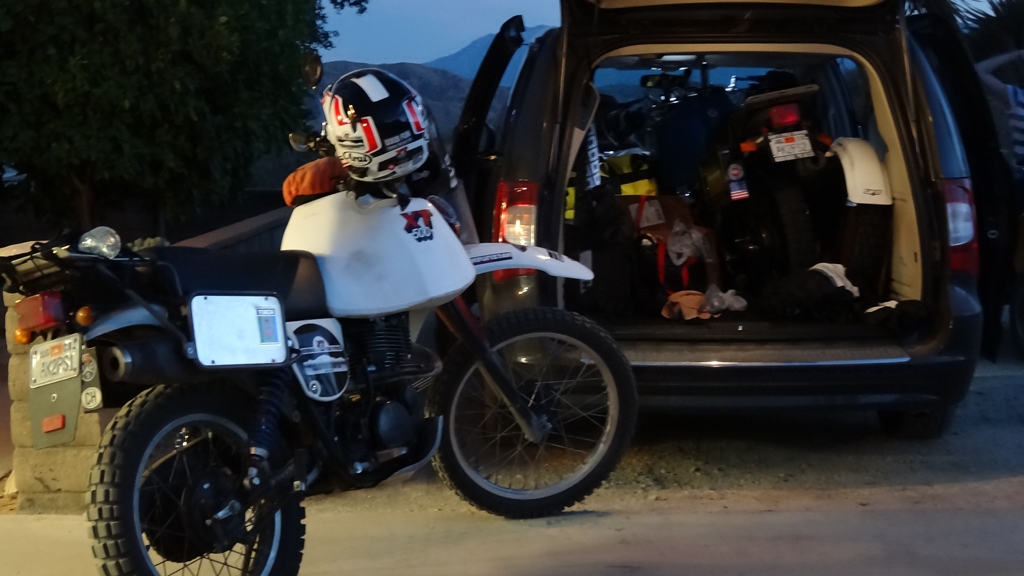 Da sich hier oben in angemessener Zeit kein Ersatzmotor für Axel’s XT500 auftreiben lässt, suchen wir nach Alternativen. Wir inspizieren eine zum Kauf angebotene Kawasaki KLR650. Fehlanzeige. Ich bin sehr enttäuscht. Zwar befindet sich das angebotene Motorrad in einem recht guten Zustand, hat nur 8000 miles auf dem Tacho und es gäbe noch Aluboxen dazu. Aber eine KLR650 ist in allen Belangen und jeder Hinsicht schlicht keine Alternative für eine XT500. Kolossal überforderte, viel zu weiche Gabel und Dämpfer, ein lahmarschiger Motor, viel zu viel Plastik und eine grobe Verarbeitung. Bei solchen Eckwerten kann uns auch die bekanntlich hohe Zuverlässigkeit des Motorrades nicht überzeugen. Nein, sicher nicht. Damit verbleibt also nur noch die Möglichkeit eines Mietwagen’s, mit welchem wir Axel’s XT runter nach Palm Springs fahren können. Die XT muss mit! Koste es, was es wolle.