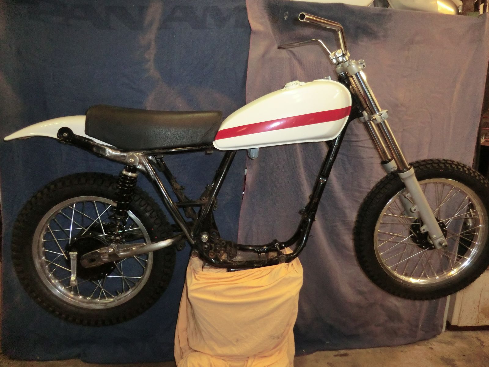 Das waren Kleinigkeiten wie ALU BSA Tank eigentlich für SR aber in XT. DreiBuchstabenMann Classic Topf eigentlich SR aber in XT, Siztbank Eigenbau (1MannZulassung) und Ochsenaugen.