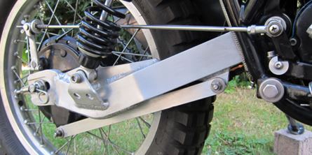 Wichtig ist auch die Position der unteren Federbeinaufnahme, dh der Abstand vom Schwingendrehpunkt und die Lage zur Verbindungslinie Schwingendrehpunkt / Hinterradachsmitte.