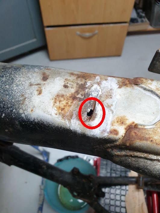 das Loch auf Bild 2 würde ich mal einem schlecht montierten Tank zuordnen, der dann viele Km auf dem Rahmen rumgedröhnt und das Loch reingeschubbert hat. Hat das Rohr umliegend noch Substanz lässt sich an dieser Stelle komod ein Reparaturblech öldicht aufschweißen.