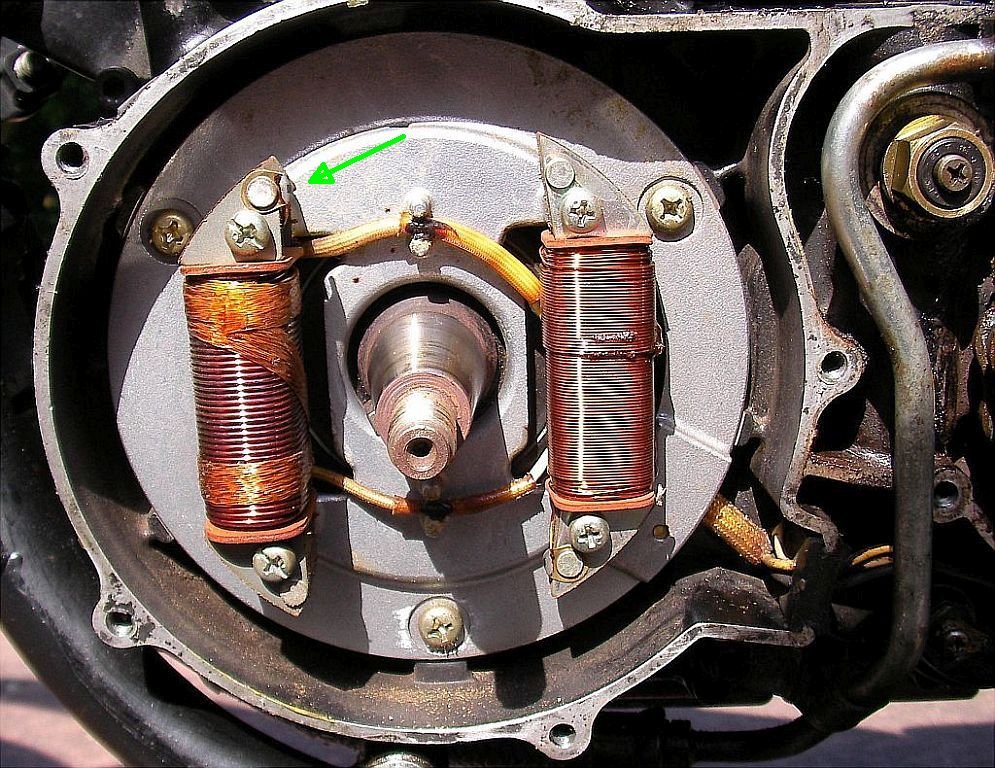 Links siehst Du die Lichtspule, rechts diejenige, die für die Zündung zuständig ist.